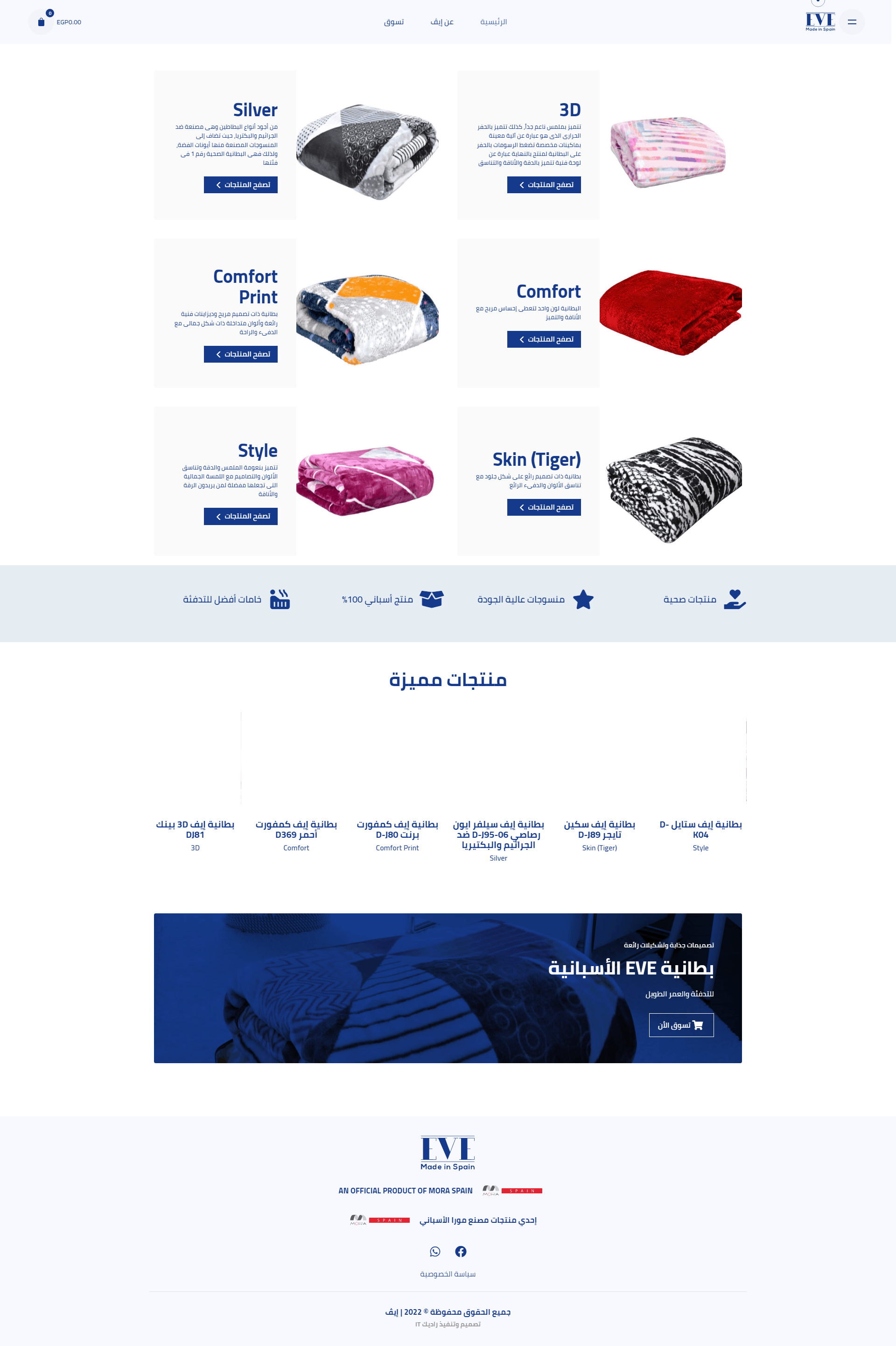 Eve Textile is a store specialized in Blanckets and official branch for MORA SPAIN Factory in EGYPT